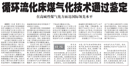 2022年作為常壓循環流化床煤氣化制合成氣技術的典型案例通過石化聯合會鑒定,鑒定委員會一致認為,該技術總體達到國際先進水平,在高堿性煤氣化方面達到國際領先水平,對新疆高堿煤開發和發展當地經濟具有積極意義